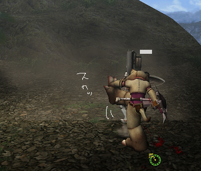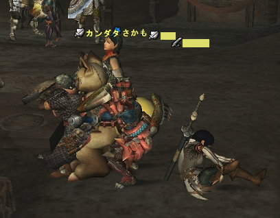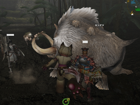 まとめるのヘタΣ(´=ω=`)? まー・・いっか。 さてさて、ノリのいいハンターデスクック(仮名)さんとスネオ(仮名)さんと共にコンガ蹴り狩りに行くことになったカンダタ隊長とさかも。 なんでスネオ(仮名)さんかは、またあとで。 しかーし、気候の関係?でコンガがいないので、なんとなくでドスランポスを蹴り狩りに行ってきました。 え?そもそも蹴り狩りってなにかって? 蹴って狩るんですがなー。 げしげしと。 そんな狩りの途中・・・ふとさかもはあるコトに気がつきました。 さかも > 誰かスネオみたいな声してる(´・ω・`)