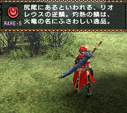 新装備の素材は、残すところ装飾品に使う火竜の逆鱗を4~5個。 下位レウスでも出るハズなのですが・・・全く出ません(´=ω=`) モンハン大会で、上位蒼レウス行ったら切り落とした尻尾から逆鱗がやぁっっっと1個出てきました(゚∀゚) 下位10体近く倒して1個も出なくていい加減嫌気がさしたので、作戦を変えようと思います。 (`・ω・)っ【レウスの尻尾だけ剥取ろう作戦!】 ってことで、上位レウス狩りはじまりましたよ~(。・ω・。)ノ