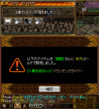 しょうがないのでスカウトに行ってきました(´・ω・`) とりあえず。かまお復活大作戦で!! 河口ダンジョン・ラの手前にいる、かまおゴートLv266をつかまえますだ。 手伝ってもらった姫ちゃに先こされたりしたけど、 肉の効果もありつつ(? 無事2匹ゲッツ! かまおExとかまおDx。 牧場のスタッフ2名ゲットです。 あかまお 秘技!肉の天の川~~!!! と、いうことで。 さかも牧場、今のところ乳牛2頭しかいないので鳥をスカウトしにきました! 名も無き塔の5階あたりの鳥Lv255をつかまえます。 さすがに本日3種類目のテイムともなると、説得中でもSS撮る余裕が出てきます。 そして今頃説得が至近距離じゃなくても届くことに気が付くさかも。 かまおの時、ダメくらいながら説得してたよ(´=ω=`) なかなか255が出なかったり睨み合いOFFになってたりして大変だったけど、おそろレベル254で2羽ゲッツ!! 名前はぁ~~~ 東京鳥骨鶏と名古屋コーチン。 (。・ω・)フンフフン♪うまそう。 お。まてよ。 乳牛と鳥ゲッツだから・・・ 食ってみたいw その後再振り完了して、試しにトランに狩りに行ってみました(。・ω・。)ノ すると、狩り始めて3分後! 宝箱から、SUマウンテンゲッツww 牧場はGOMIなSUしか拾わないのかっ!! そしてその5分後・・・ Uマウンテンゲッツwwwww しょうがないので露店出して落ちました。 売れた(゚∀゚) そして耳きた(゚∀゚)ありがとう 乙 とかマジ・・・w 大波乱の牧場新ファミ編へつづく・・・・ PR ∴ この記事にコメントする