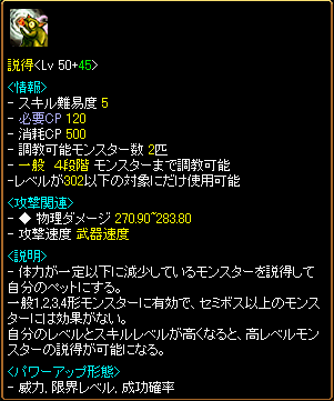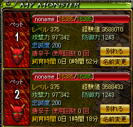 今日はダメかぁ>< と、思ったら!女神さん行ってくれるって!!! やった(゚∀゚)!レッツ骨ファミゲッツ! もっかいみんなに耳して支援おねがい>< 秘密行ってたネクロちゃ、急かせてごめんよ(´;ω;`) とりあえず、さかもの装備へっぽこなのでスキル装備を借ります(`・ω・´) 見よ!このぎんぎらの指!!! 装備品が外れなくなる呪いをかけてください。今すぐ!!! で、アーチ込みで↑説得。あとスキル石と女神で、テイム可能レベルがぐんと上がります。 テイム可能レベル =キャラレベル+(説得スキルレベル-25)+(勝利の女神スキルレベル÷2) ちなみに、 ヘブンリープレシング(天使スキル)は、スキルレベル=レベルダウンできる数値 毒舌(ネクロスキル)は、スキルレベル×3+10 が、下げられるレベルです。 たぶんね(´・ω・`) で、なんだかんだで・・っていうか納骨堂に記憶したのにさかものコルが全然届かなくて結構時間食いつつみんな納骨堂B6に集合(`・ω・´) アーチ、石、女神込み込みで、テイム可能レベル355! これじゃなに捕まえるにも中途半端なので、毒舌でレベル下げてもらいます(´・ω・`)毒舌を20に調節してもらって、70レベル下げてもらいます。 狙うは骨ファミ最高レベル425!!! を、下げて355で。 さぁ!さかもは何も出来ないので! みんなお願い!!!(´=ω=`) ってことで、425ファミ釣ってもらって、花投げてもらって、石化してもらって、削ってもらって、レベル下げてもらって、女神もらって! いざ!説得!!! 説得4・5回でゲッツ! レベルはなんと375歳! 2回目はさかもの熱心な説得に耐え切れず昇天されましたが、3回目でなんとか2匹目もゲッツ!! 375レベルおそろい~! やったやった><! なんか、思ってたよりすっごくうれしいのはなんだろうw 新ファミステはこちら↓ うん、よくわかんない^^ 鬼のようにレベル上げてくれた女神さん、 装備貸してくれた鬼テイマさん、 女神さんに話通してくれた鬼アチャさん、 相談に乗ってくれた友のみなさん、 テイムの為に犠牲になったファミさん、骨ッコさん、 そしてテイムの為に集まってくれたギルドのみなさん、 本当にありがとう(゚0゚)(。_。)ペコッ PR ∴ この記事にコメントする