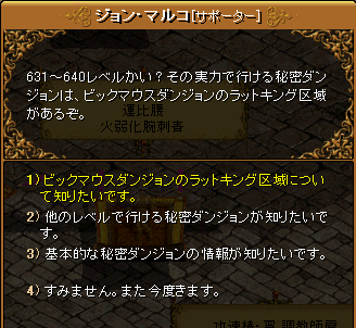 さっそくですが・・・耳頂きました! ありがとう(`・ω・´)b え?変なモザイク?? 気にしなーい^ω^ さてさて、先日SUを拾った牧場さんでありますが、その時一緒だったPTの方とまた会いました(。・ω・。)ノ いたずらに思いっきりハマってたあの方です・・・ うんと~~~なんていうか~・・・・・ やっぱりだまされてたんだ(゚д゚;) 悪いコにいぢめられたのね>< 迷いますって・・・wカワイイなこの人w え?セクハラおやじ?? まだセクハラしてませんよ^^ いや~癒されますな。 てか あとあと~、昨日のアップデートで実装されたました秘密のダンジョン。 約25個実装!! 約 ってなんだ・・・ と、いうことで・・・まだ行ってないですが、古都のまる子さんにお話を聞いてきました(。・ω・。)ノ へー。読むのめんどくさいから、適正レベルのトコしかちゃんと読んでないけど。 とりあえず、一番低いレベルの秘密がこちら↓ てか経験値とかわかんないと、どれいっていいものやら・・・。 言ってみるだけなら、キャラ何回も作っていってもいいけどね(´・ω・) それとー、今実装されてる一番レベルの高い秘密がこちら。(タブン) 例の千葉に住む巨大ねずみの巣窟ですね。 キケンなのでなるべく近づかないようにしましょう。 とりあえずいける秘密は全部いくどー!!お~~! おまけ。 |・ω・。)天使に化けるルドルフ。 Σ▽=ω=▽しっぽかくれてないじゃん・・・ PR
